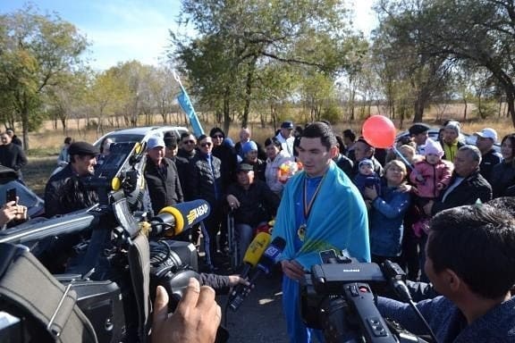 На родине – в Талдыкоргане спортсмена встретили со всеми почестями. Поздравить пришли местные власти, родные, коллеги и журналисты. На торжественной встрече ему подарили лошадь.
